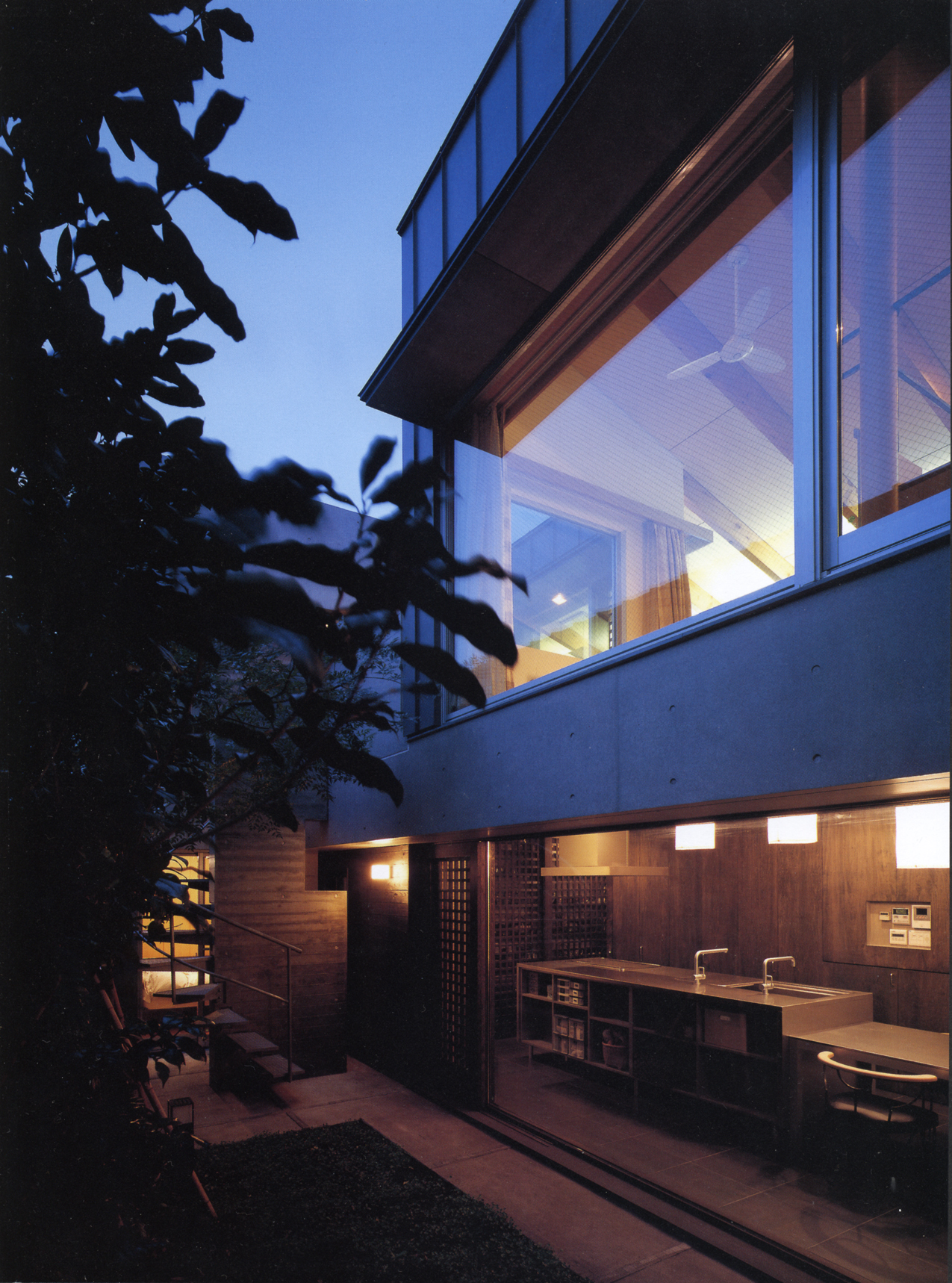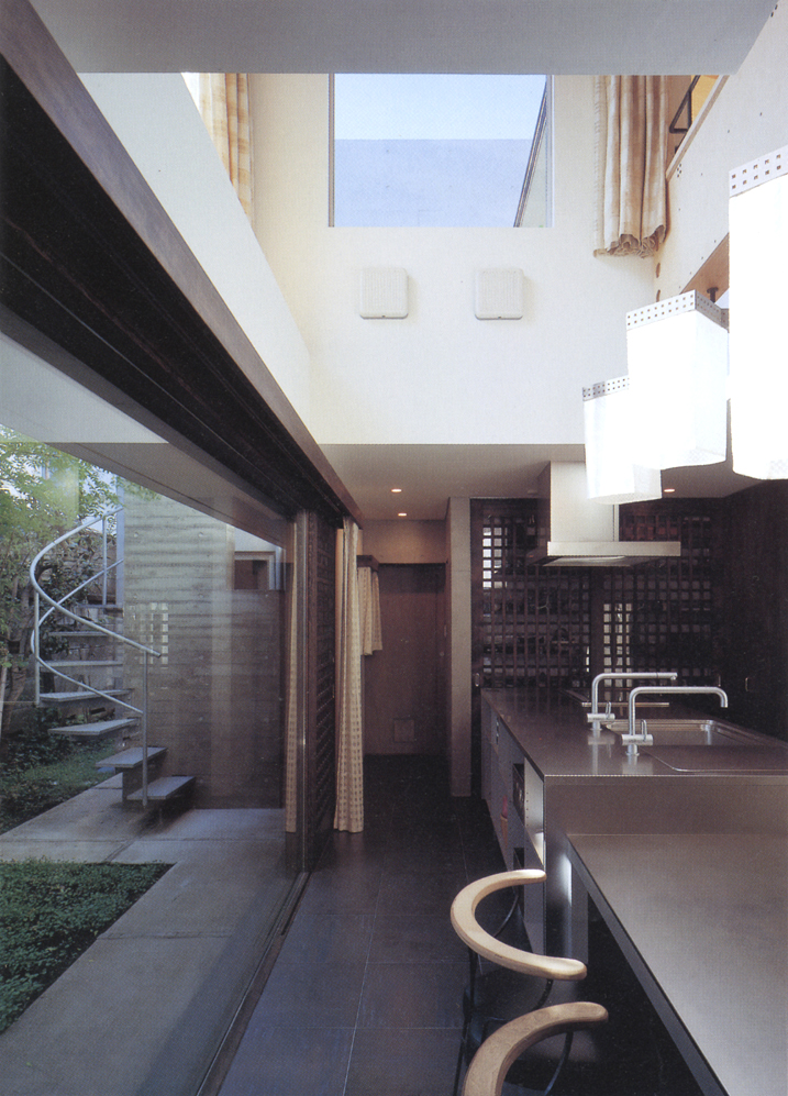 都市部でありながら、どこか穏やかな時間が経過する西落合に建築された、コンクリートと木の混構造の住宅です。敷地周辺の与条件に応じて配置された3つの庭は、家族に必要な外部空間であり、街並を豊かにする空隙となります。