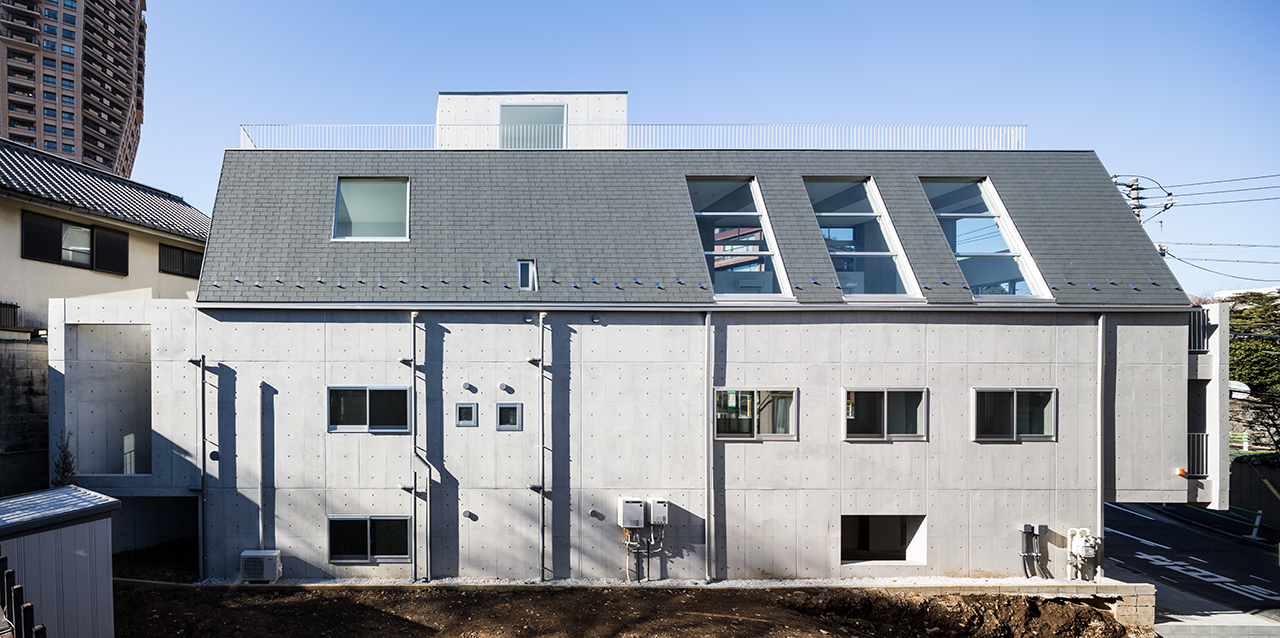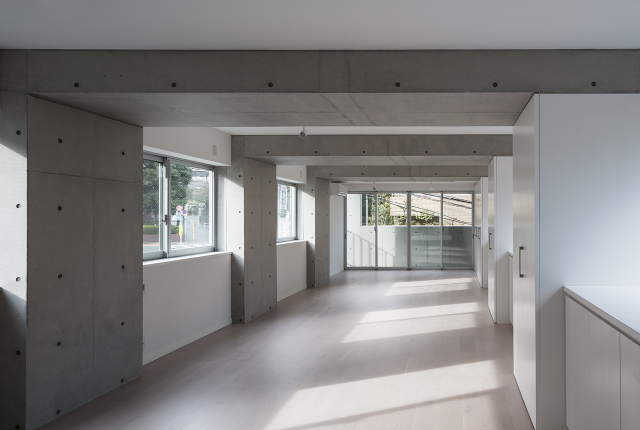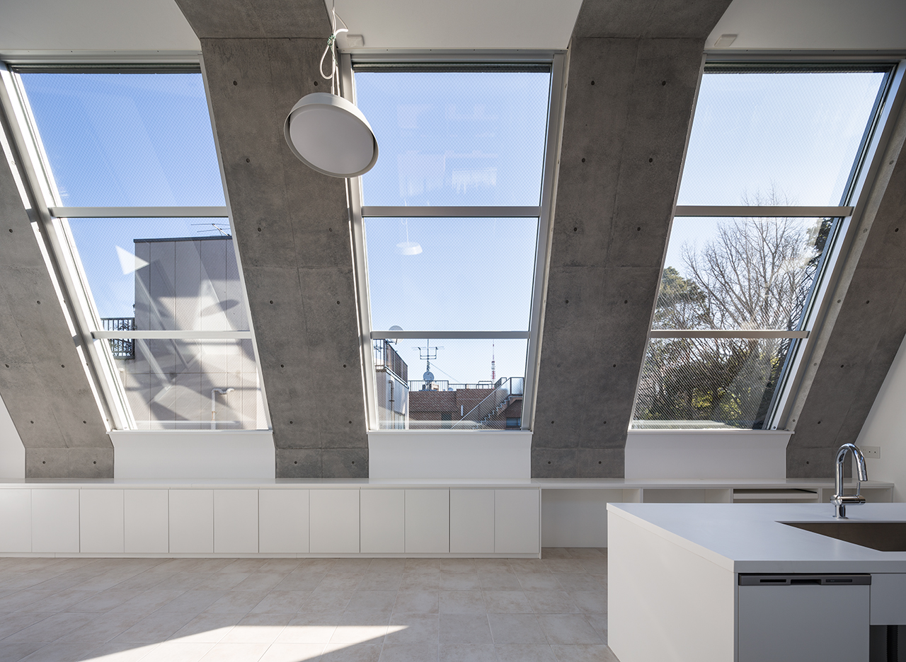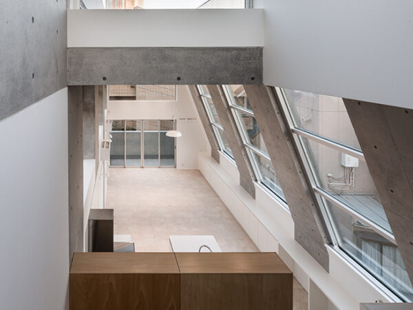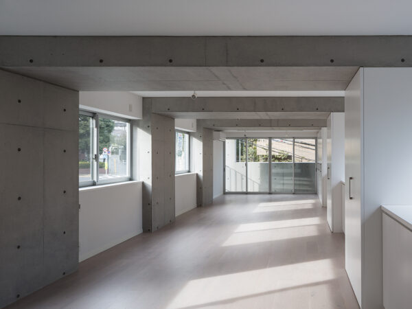 鉄筋コンクリート造の門型フレームで全体を構成することで、空間の途中に構造的な壁や柱が必要なくなるため、間仕切を自由に設定できると共に、将来的にもライフスタイルに合わせて間仕切を変えることができます。門型フレーム(=構造体)の打放しコンクリートと、フレーム間の白い壁が交互に連続する様相から、ゼブラハウスと名付けました。