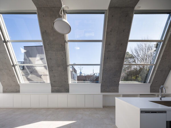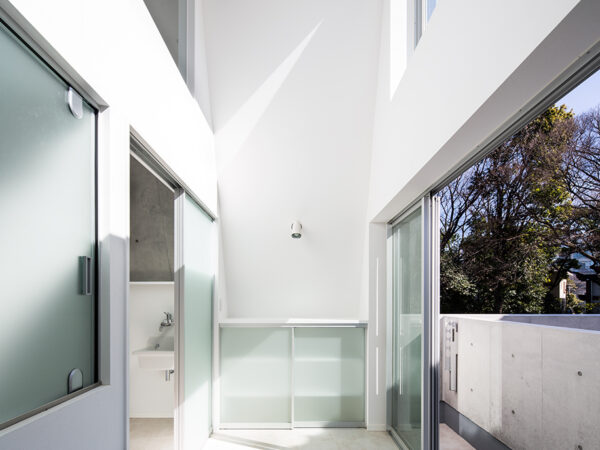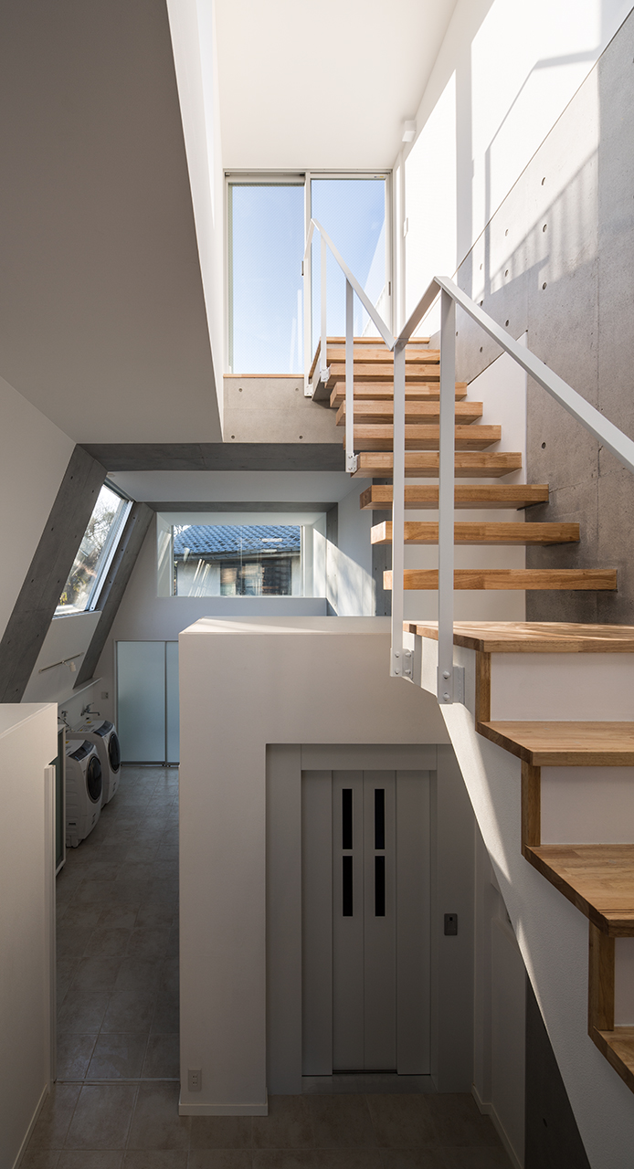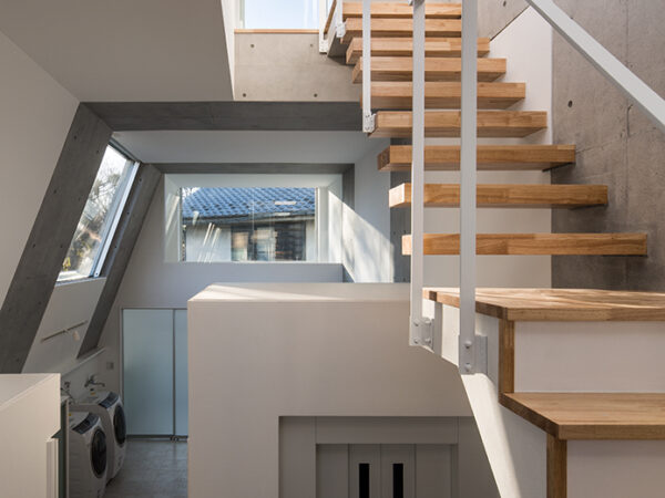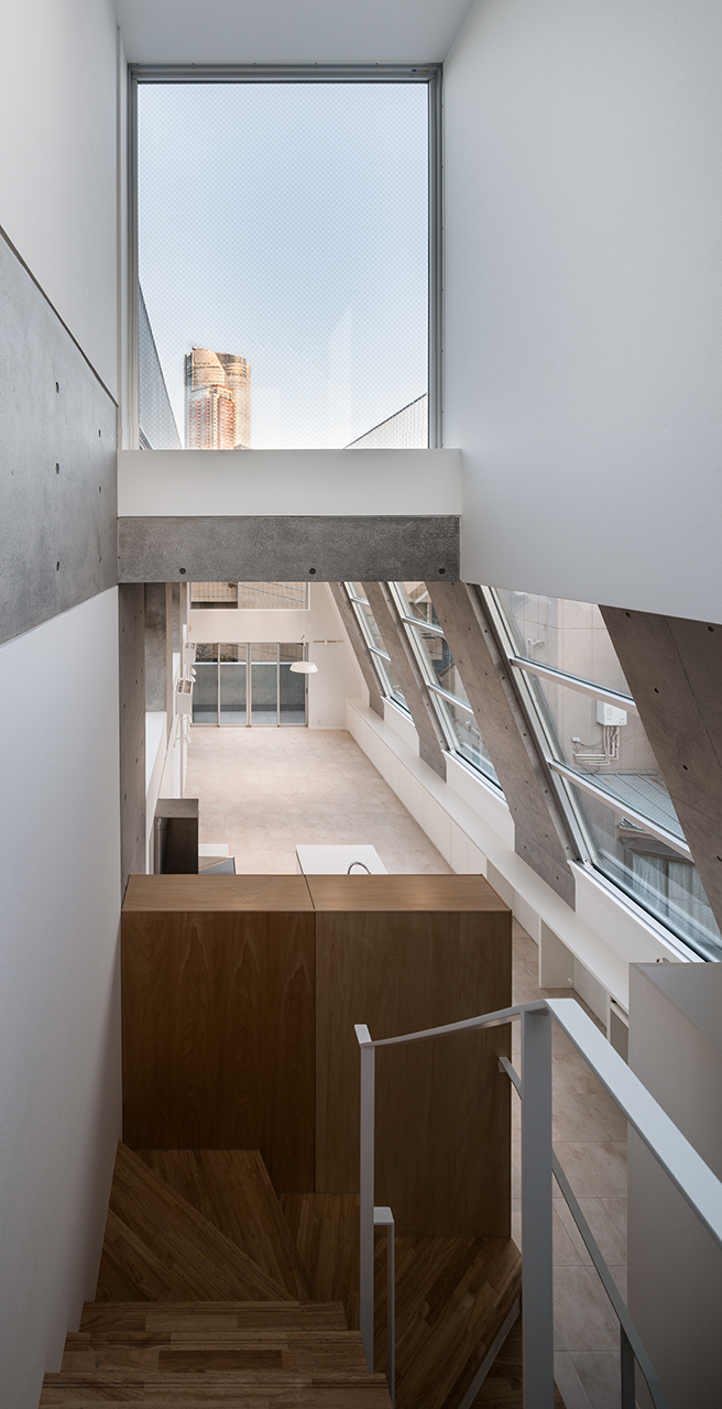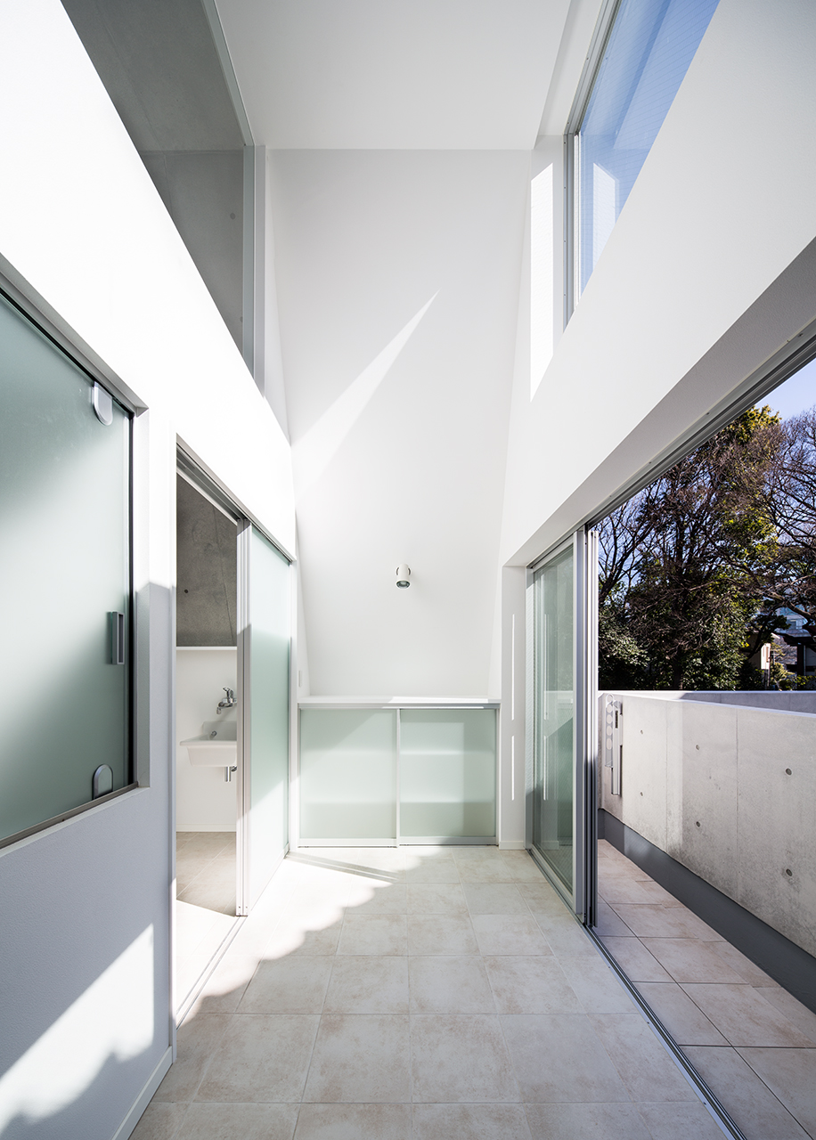 鉄筋コンクリート造の門型フレームで全体を構成することで、空間の途中に構造的な壁や柱が必要なくなるため、間仕切を自由に設定できると共に、将来的にもライフスタイルに合わせて間仕切を変えることができます。門型フレーム(=構造体)の打放しコンクリートと、フレーム間の白い壁が交互に連続する様相から、ゼブラハウスと名付けました。